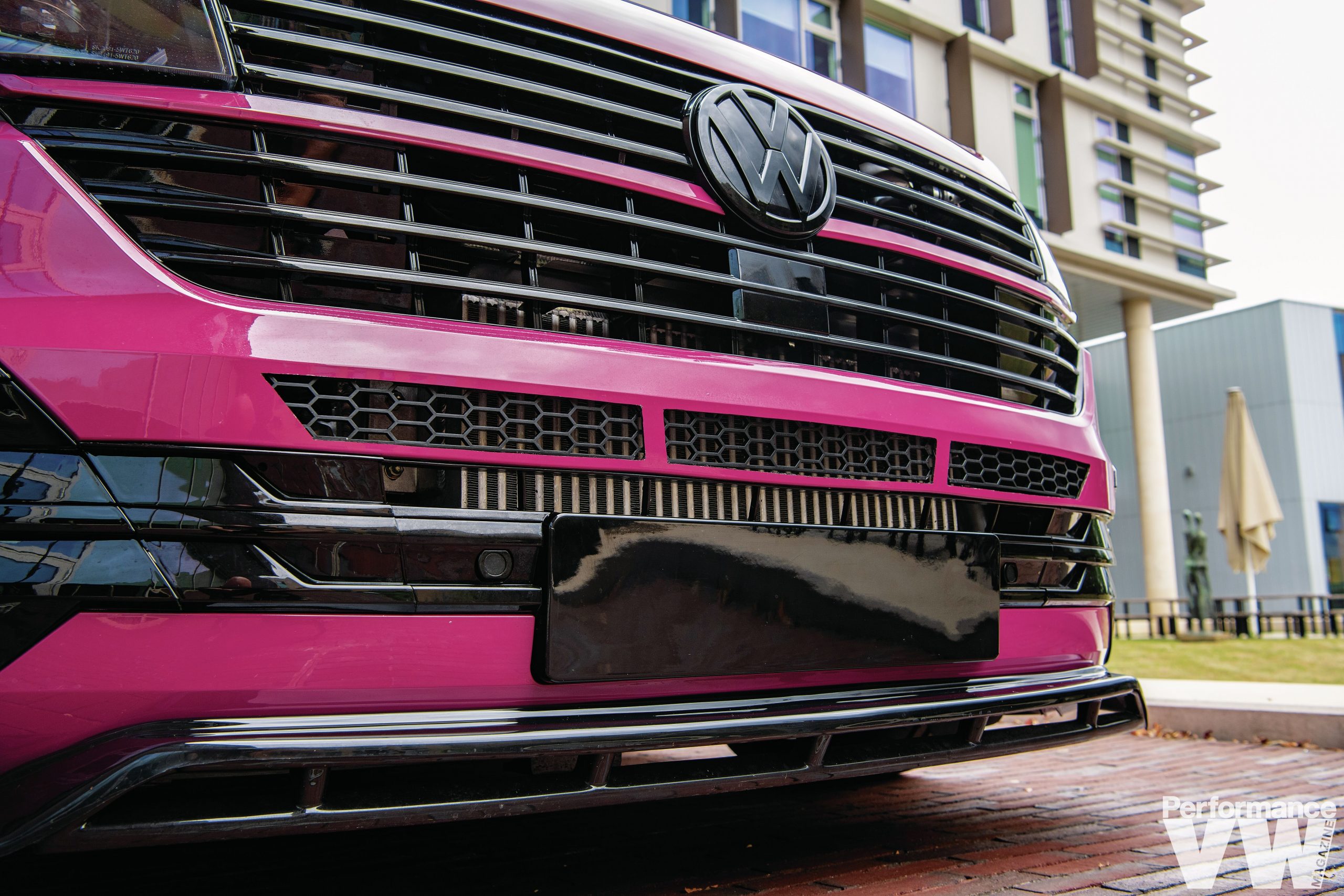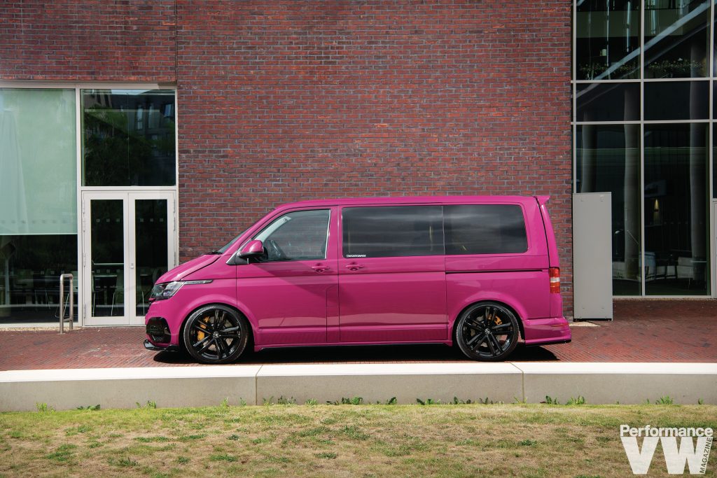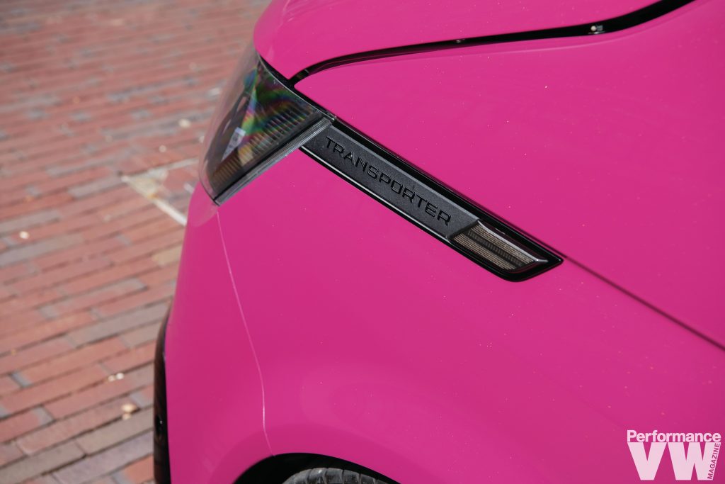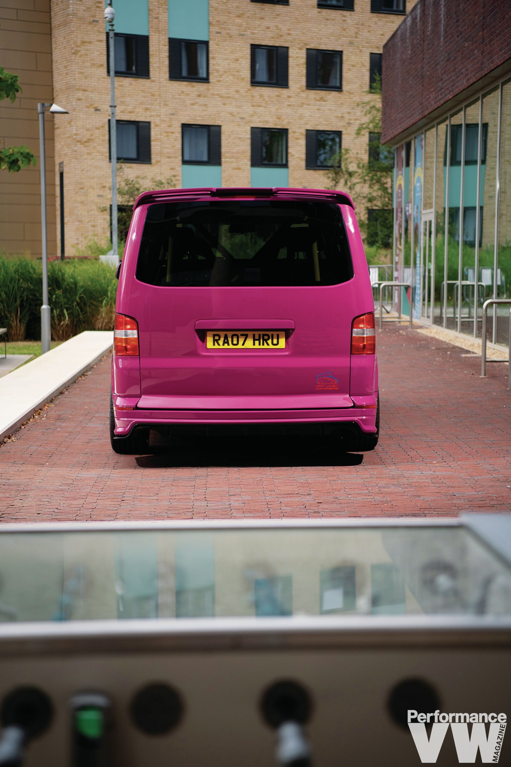 Full respray in Porsche Rubystar (Rubystone) Red. Full T6.1 Transporter front end conversion with Sportline front bumper; wings and bonnet, Travelinlite front splitter; Transporter HQ T6.1 DRL headlight upgrade; Fiesta ST rear spoiler, Sportline side skirts |