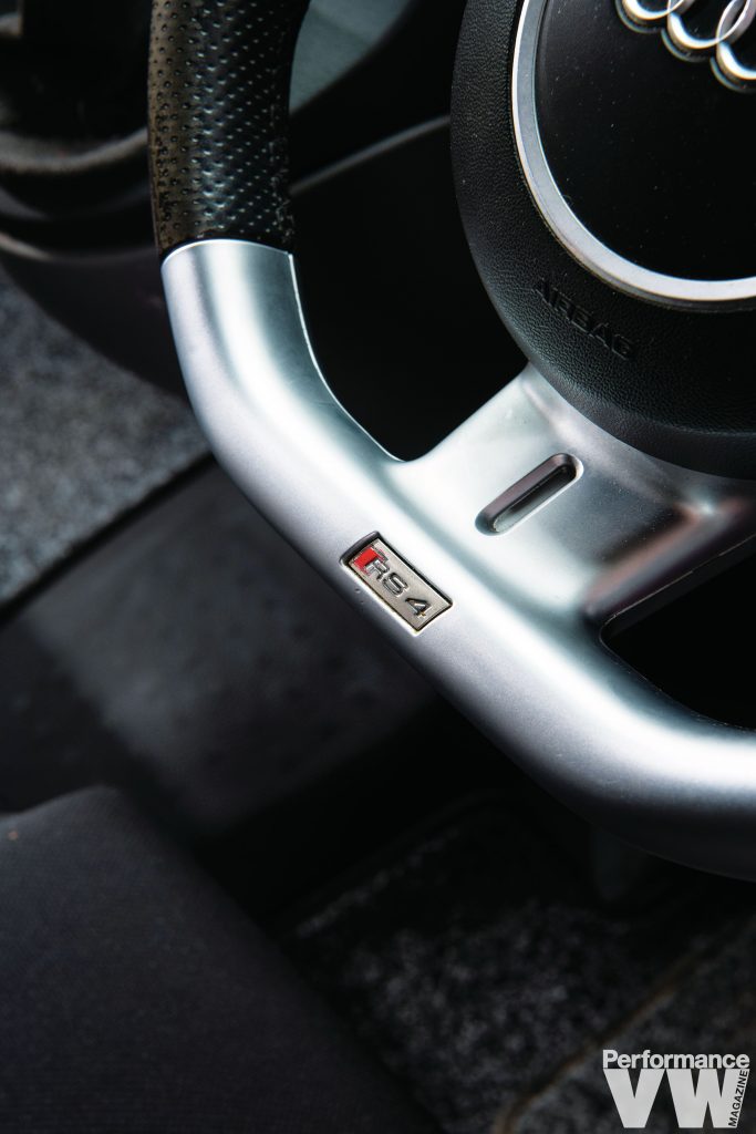 ABS became a real issue in the build because the RS4 uses wheel speed sensors that don’t fit into the hubs like the magnetic T5 units, so Andi had to drill new holes in the hubs for the Audi ABS sensors in order to get a working speedo. Electronics also proved problematic because the RS4 body control module was expecting signals from rear door crash sensors, but with some clever wiring adaptations and a few resistors they soon got around it. Even the RS4 fuseboard has been relocated for easy access within the T5 cabin.