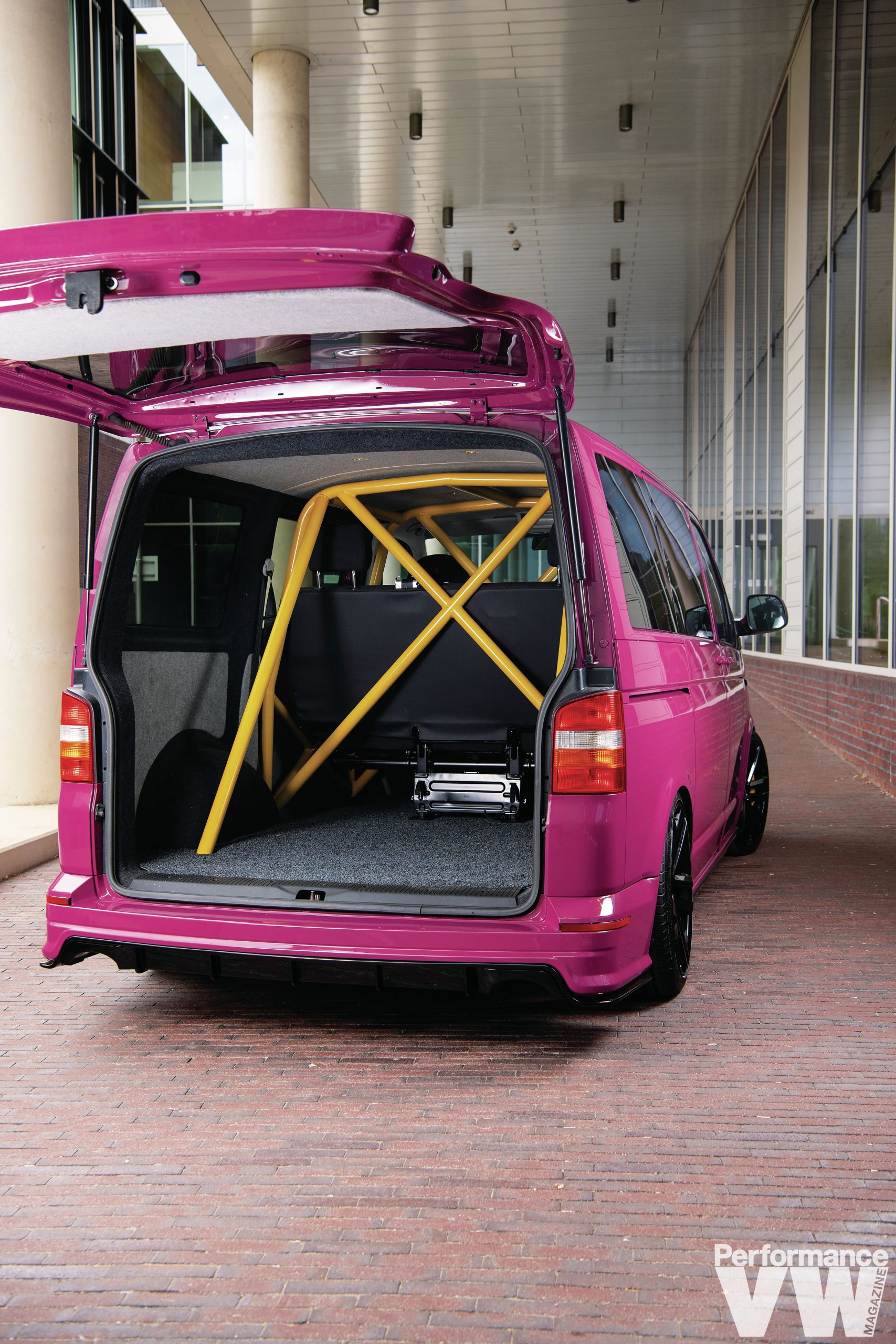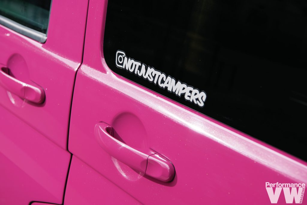 Although the T5 body was always going to be on the receiving end of some choice upgrades, Andi firstly replaced the rear passenger quarter panel and wheel arch to eliminate any rust before a T6 front end conversion including the wings, Sportline bumper, bonnet, Travelinlite front splitter and uprated Transporter HQ headlights were installed. Out back a Fiesta ST rear spoiler now gives the rear end a subtle tweak as the slab sided arse end disappears from most road users. Following a poll on the Not Just Campers Youtube channel, have we mentioned Andi has a Youtube channel (www.youtube.com) viewers voted for Porsche Rubystone Red but with a slight twist. “I dropped it off to Lee at ADV bodyrepairs and he said the normal Porsche colour looked a little flat, so he threw some gold flake into the final coats of lacquer, I’m so glad he did.” Popping in the sun it glistens and as Andi quite rightly exclaims, “If you can hear it coming, you might as well see it coming, too.”
