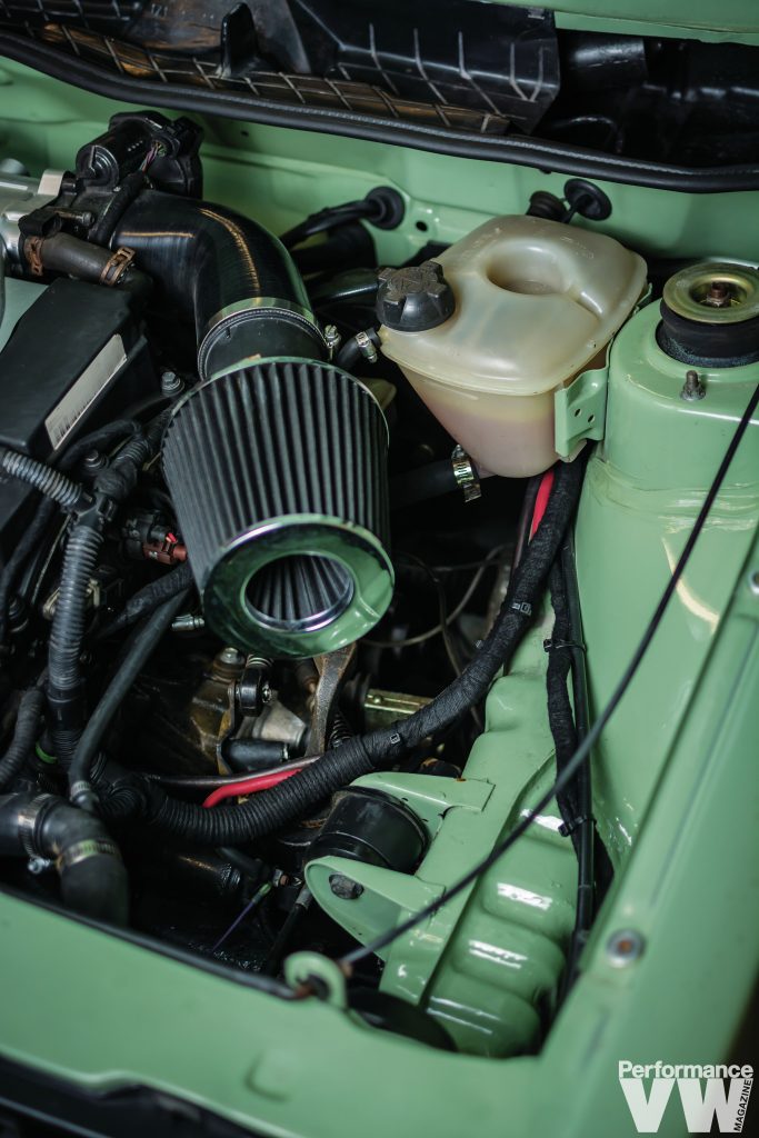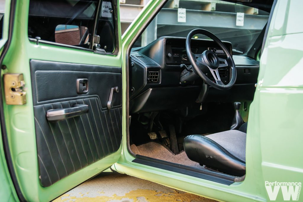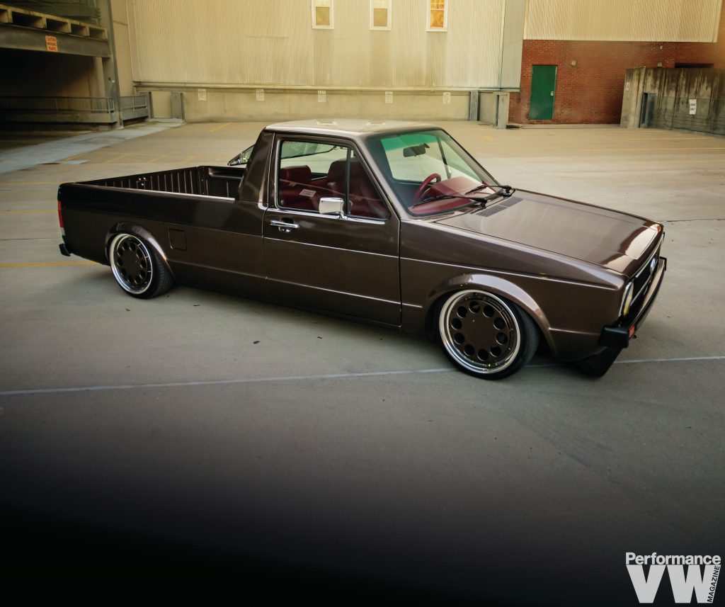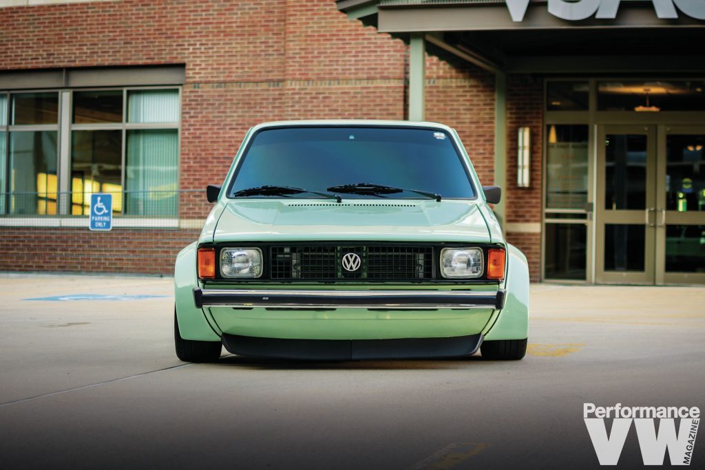 The stock diesel was evicted to make way for a 2.8L VR6 swap. “One thing most people don’t know about me is I would rather build cars than drive them,” confesses Erik. “The feeling it gives me building them is amazing.” He once again employed his talents to respray the truck in a factory shade of Mountain Green – think Arizona Green Tea without the cherry blossoms. Before that was done, he tirelessly removed and dents, dings, and imperfections, as well as any rust.