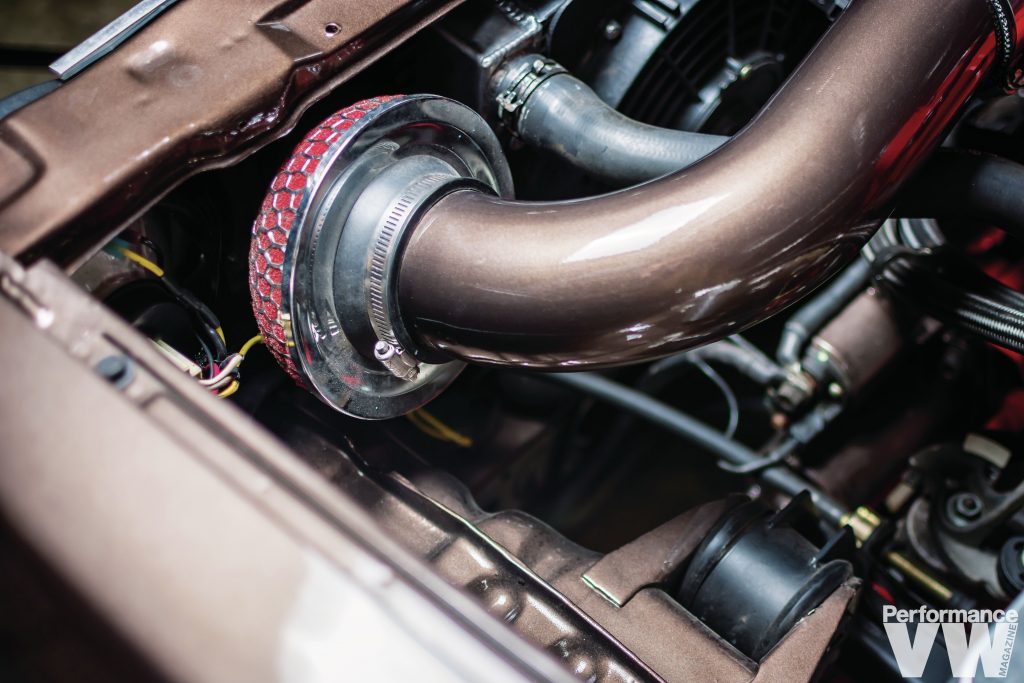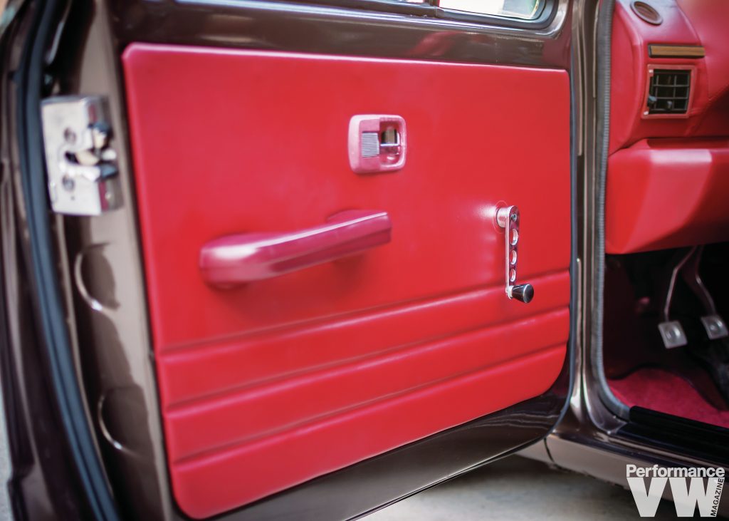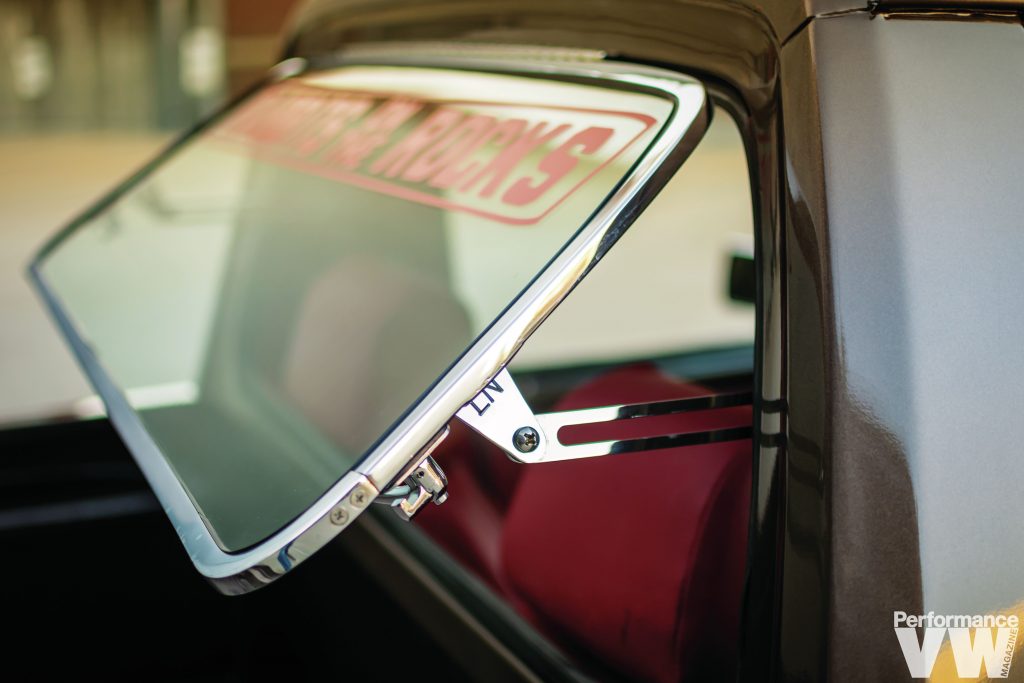 “I spent six long months redoing everything on the truck, with completely new and redone interior, redoing the paint and bodywork and swapping it to a round front end because the other front end was mangled.” The paint, which was applied twice because he didn’t like how it first came out, is Toffee Brown from later model VWs. As incredible as it looks now, at times he wished he went with white. Regrets, he’s had a few, but then again, too few to mention. The finished combo of brown over red is nothing to be sad about.