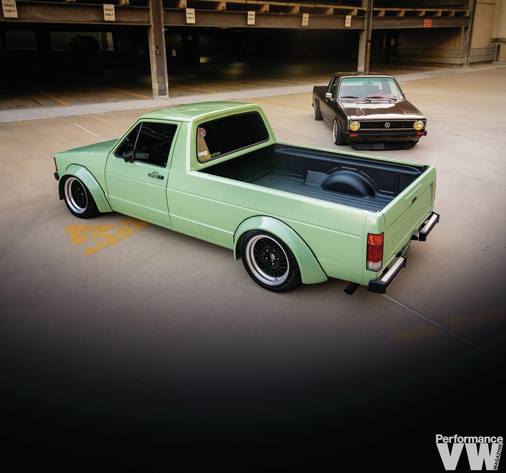 In answer to our standfirst, yes, of course it can, especially if you’re talking about Vermont resident Erik Marrier. “So as most people know me, I usually do two car builds for myself a year,” Erik tells us. “One that’s usually quick that only takes a month or so, and one that usually takes six months.” The dual Rabbit Pickups on the pages before you aren’t the first projects to come from his two hands, nor are they his last. “I do things fast because if it takes too long, I get very bored.”