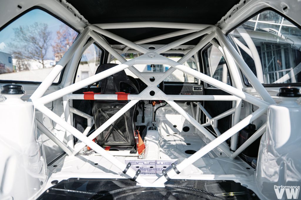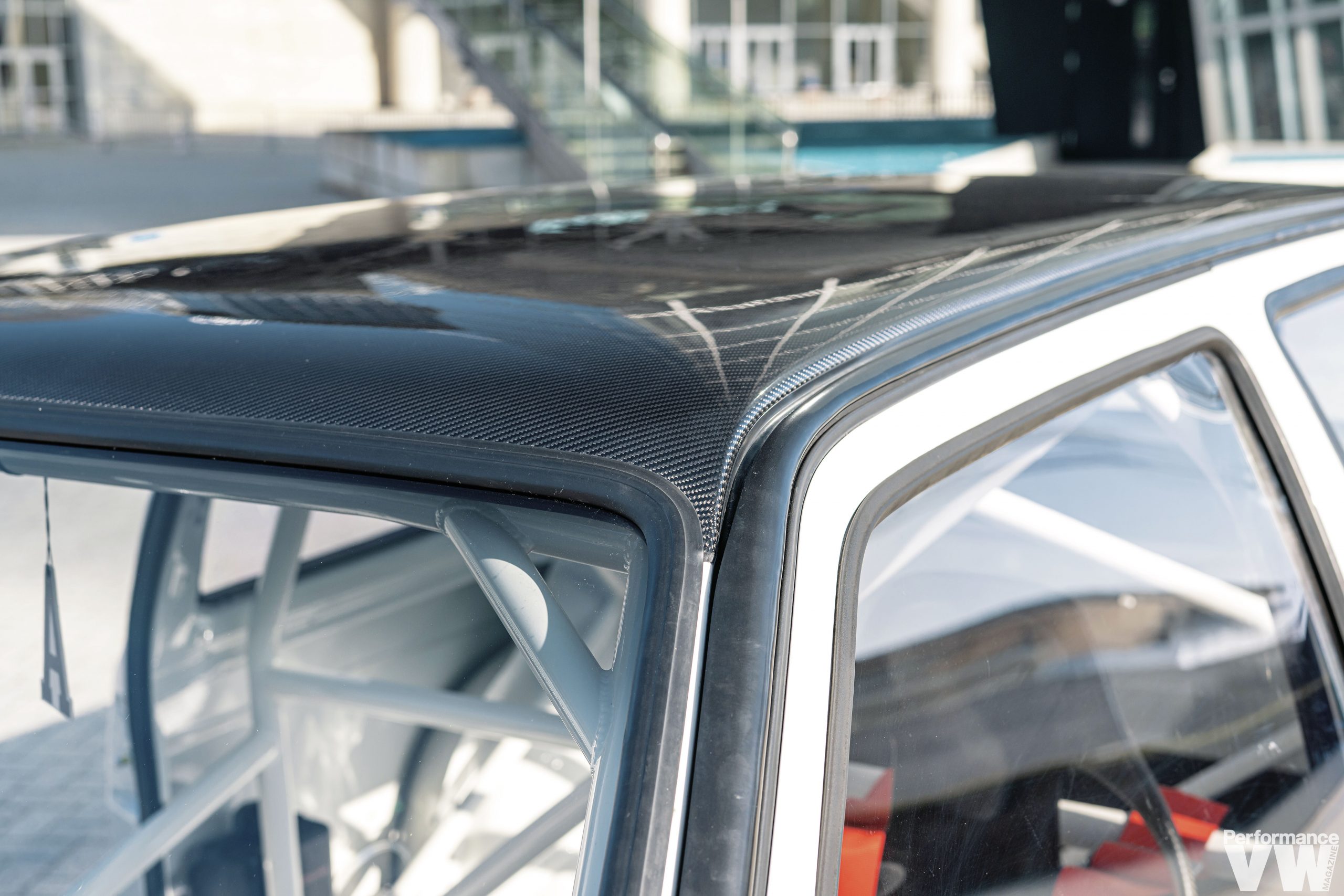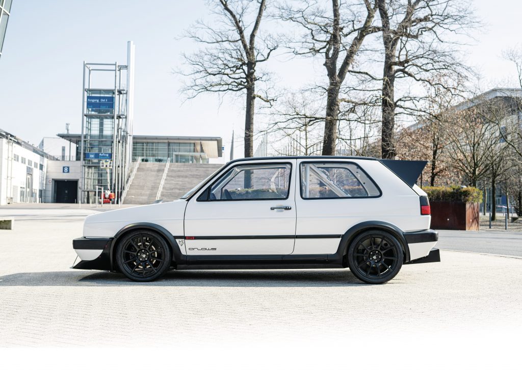 Golf CL body, chemically stripped and KTL coated then painted factory L90E Alpine White by Max Kernbach, Baltic Carbon roof, wings and spare wheel cover, Macrolon windows, Liteglas windshield, G60 arch extensions, custom aluminium under-body cover and diffuser, Custom rear spoiler, half-tinted rear lights, plastic headlight with stickers 16500_ccbdf5-3d> |
