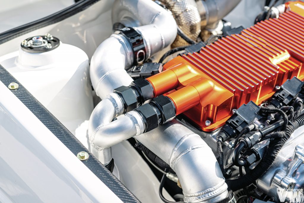 For all the brutality on tap, there’s some impressively subtle OEM+ engineering woven into the build. The dual connectors in the driver’s side indicator fill a custom ethanol tank tucked into the space under the chassis leg and there’s an oil catch can on the opposite side, plumbed into the cam cover. It’s a level of detailing that gets more impressive when you set it against the backdrop of an expanding family, several other project cars and a massive home restoration. That’s a recipe for stopping projects like this in their tracks.