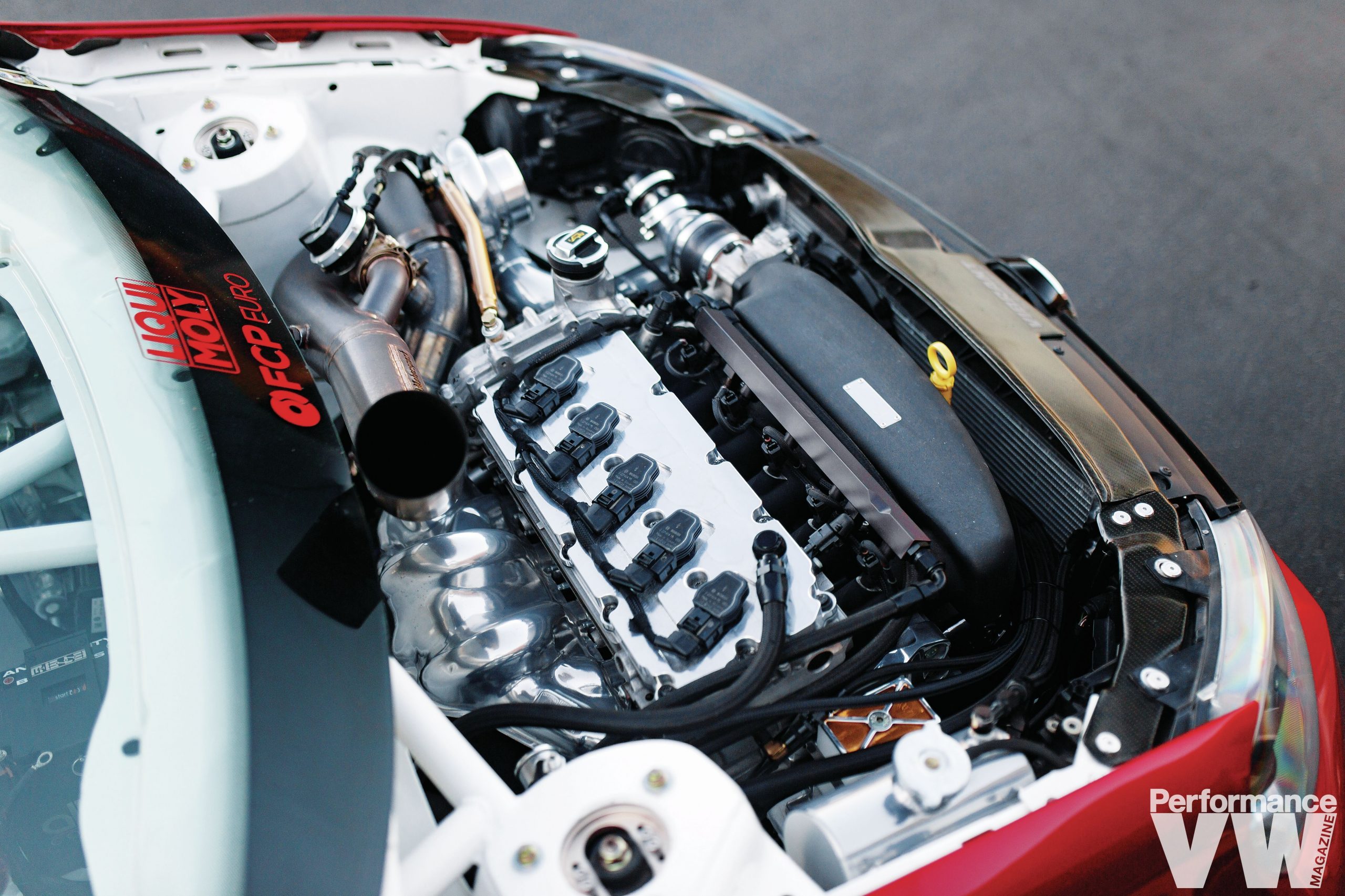 2.5L 5 cylinder 07K turbo swap, 02Q six-speed manual gearbox, Lamborghini Gallardo exhaust manifold, custom sidewinder turbo setup and bonnet-exit exhaust (Fabrication by Blood Motorsport USA), BoostLab BL66X turbo, Turbosmart HyperGate45 wastegate & Raceport BOV, Vibrant Performance plumbing, Integrated Engineering 07K catalog (billet valve cover, intake manifold, billet fuel rail, booster delete, breather adapter, catch can), Black Forest Industries Stage 3 solid motor and trans mounts, ClutchMasters FX725 Race Dual Carbon Clutch Disc kit & Steel Single Mass Flywheel, Nuke Performance Fuel Pressure Regulator, Haltech boost control solenoid, custom OBP Motorsport coolant tank, Mishimoto aluminium radiator & R-line intercooler, custom carbon radiator support cover by Race Supply, custom high output JS alternator, Bosch 550cc injectors, billet thermostat housing, water flange, and A/C delete pulley, custom finishing done on turbo, exhaust manifold, IC piping, turbo supports, coolant tank and motor/trans mounts. custom tuned by GET Tuning (435whp/371wtq at 16psi on the temporary stock, unopened motor). Engine bay shave including intrusion bars, rain tray delete, and firewall shave 14616_151233-b4> |