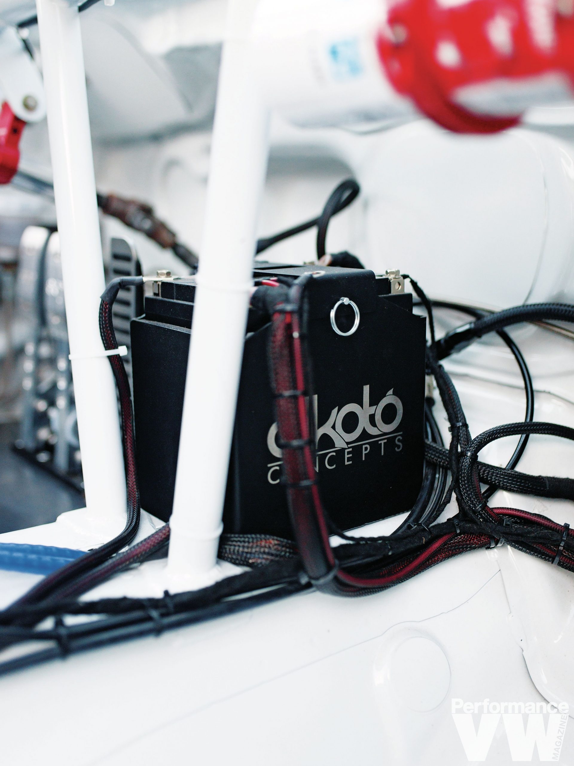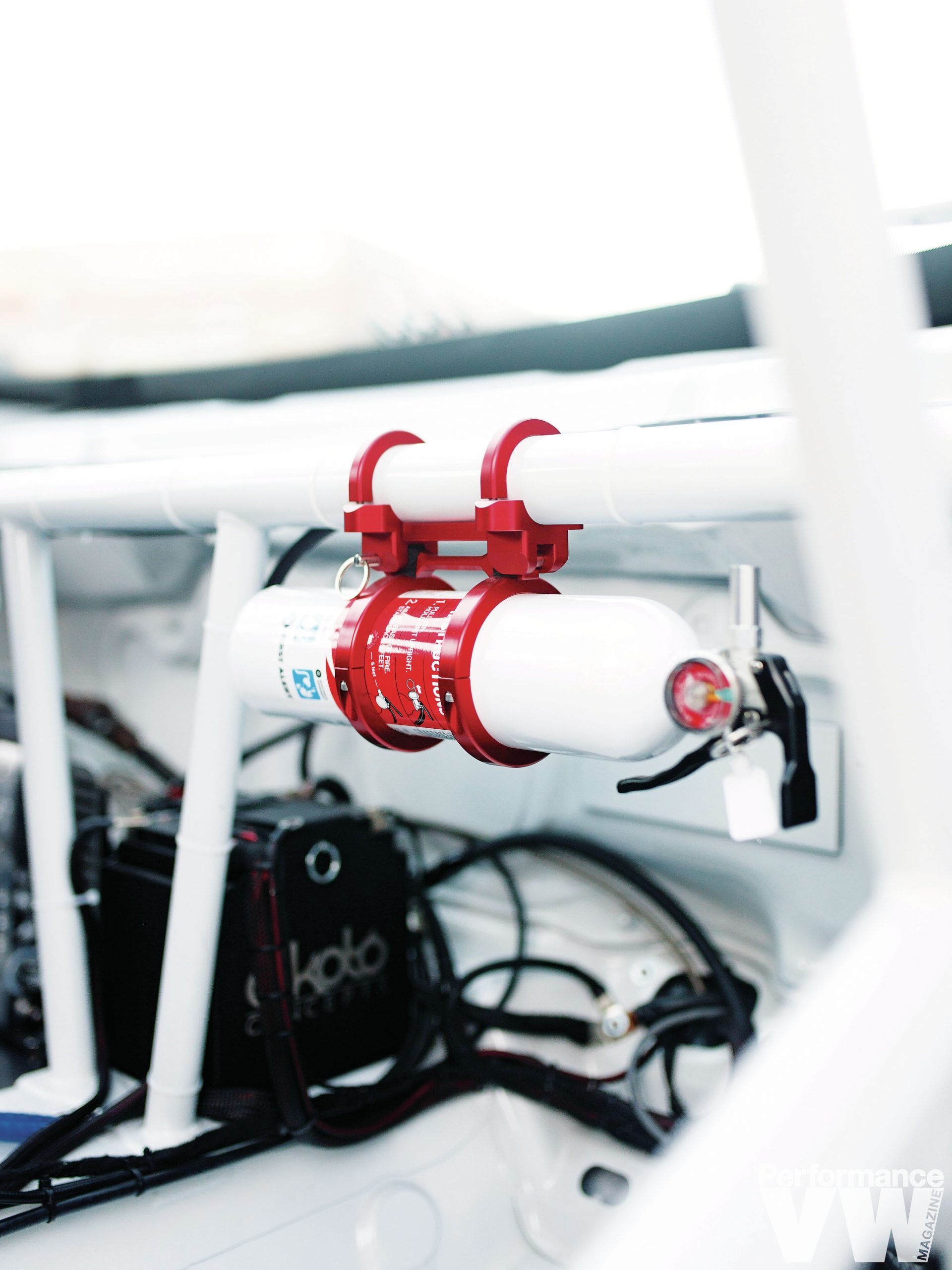 Further inspection of the interior reveals a plexiglass firewall. Safety regulations for NASA, FIA and others require the partition if the fuel cell is within the same area as the driver. Despite having a custom C-pillar filler neck for the fuel cell, the factory door needed to be kept in place as this is the one and only prototype kit and that’s what most customers will be needing.