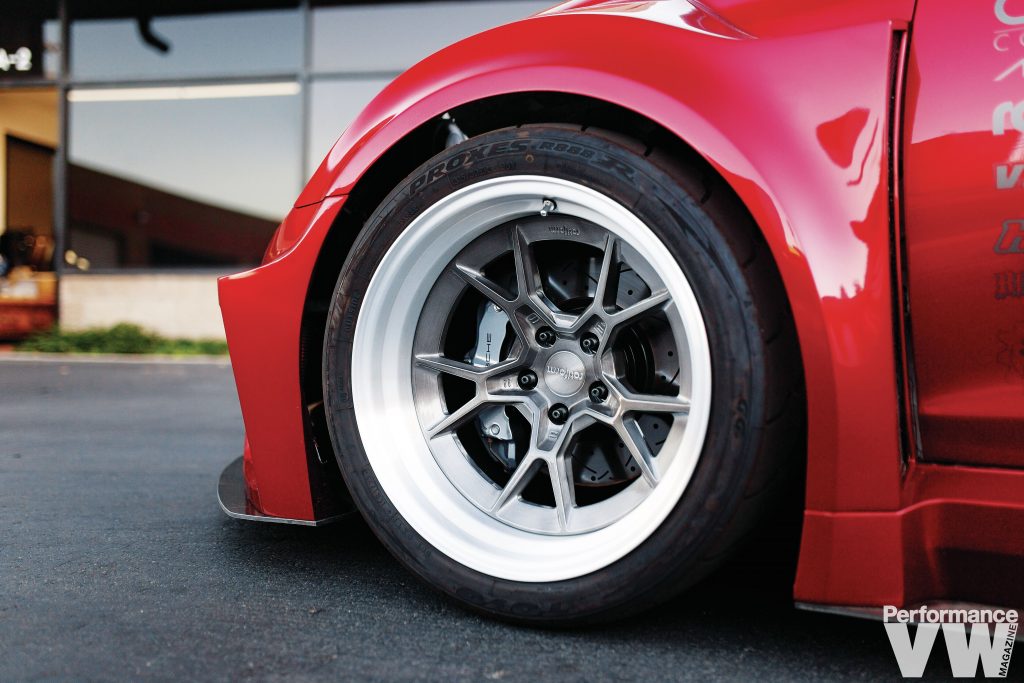 Stephen lends inspiration for a lot of things to Volkswagen’s Mk8 TCR prototype he saw at Hoonigan HQ. He fanboyed all over it, taking pictures, sitting in it, even taking measurements of things. A lot of the race car tricks can be attributed to it.